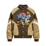 Contrast splicing stand up collar jacket