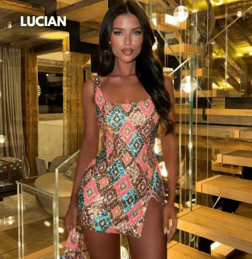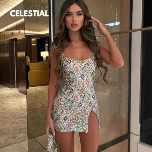 Product Title:Cross-border women’s clothing wholesale spring and summer new fashion color matching short skirt half-length multi-color hip skirt slit hip skirt