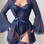 Ensemble de lingerie sexy une pièce en dentelle, manches évasées, ceinture et bas pour femme