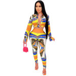 Ensemble femme à manches longues, imprimé numérique, coupe ajustée, style business casual