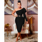 Soyez le premier à laisser votre avis sur “Robe chic à manches longues pour femme, avec encolure asymétrique et détail de nœud papillon”