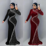 Robe élégante en velours ornée pour femme, robe de cocktail chic et tendance