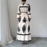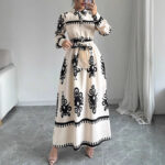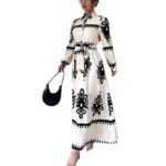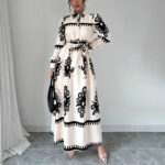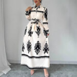 Robe longue imprimée à nouer, coupe trapèze