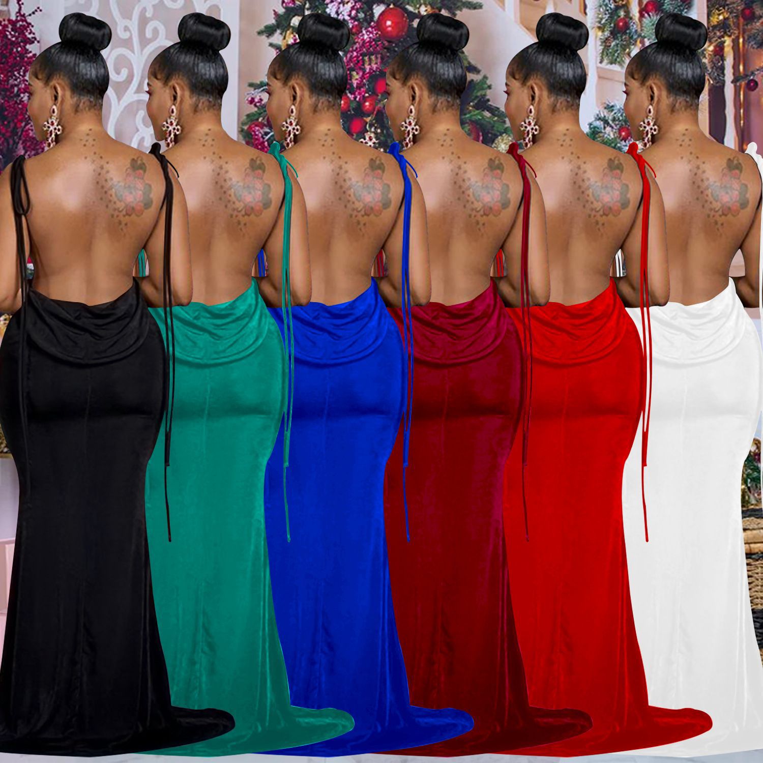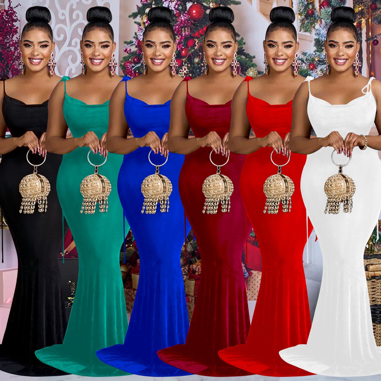 quantité de Robe longue sans manches unie et tendance avec bretelles à nouer pour femme