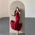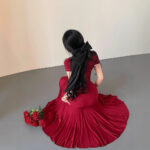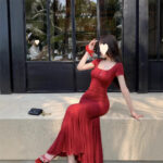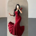 Soyez le premier à laisser votre avis sur “Robe sirène moulante à manches courtes, élégante et plissée, style minimaliste New Hepburn, avec jupe longue drapée et jupe longue.”