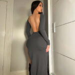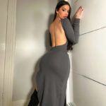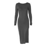 Soyez le premier à laisser votre avis sur “Solid color long-sleeved hip-covering skirt European and American cross-border 2023 winter new women’s sexy backless slit dress dropshipping”