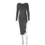 Solid color long-sleeved hip-covering skirt European and American cross-border 2023 winter new women’s sexy backless slit dress dropshipping